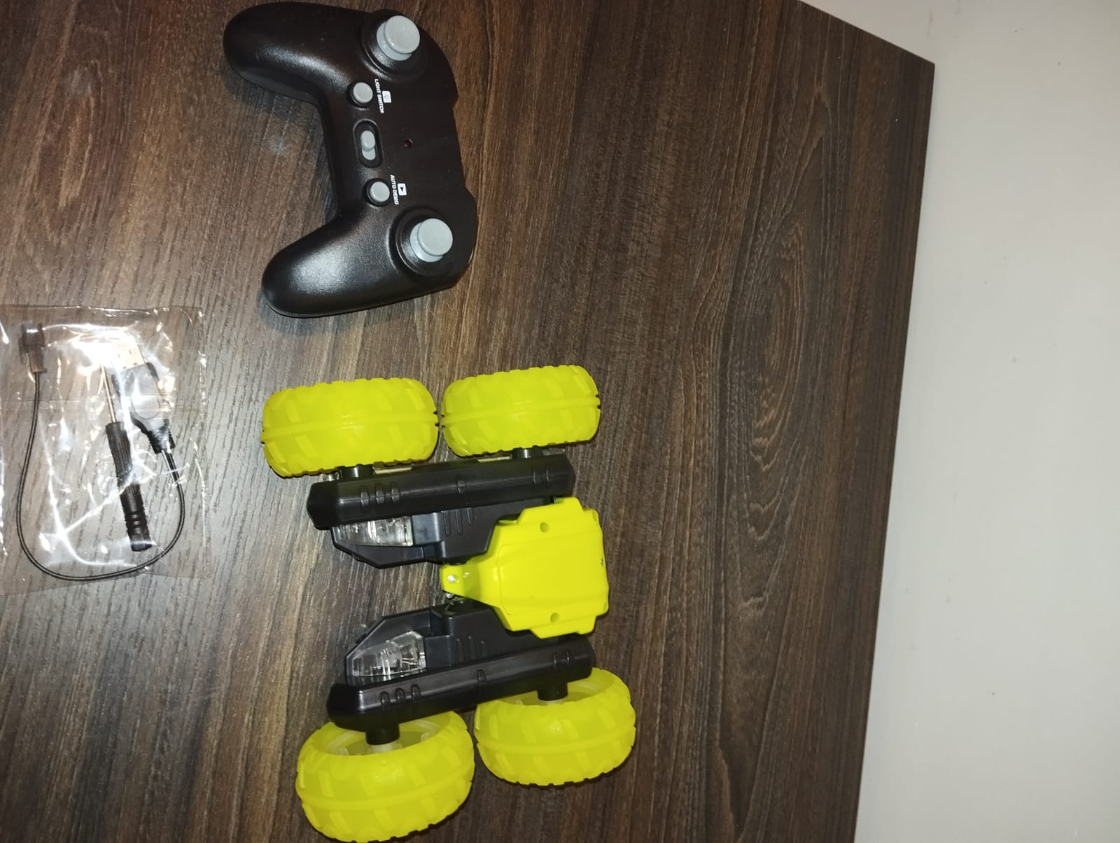 Carro acrobático + Control remoto + Cable de carga USB + Manual.