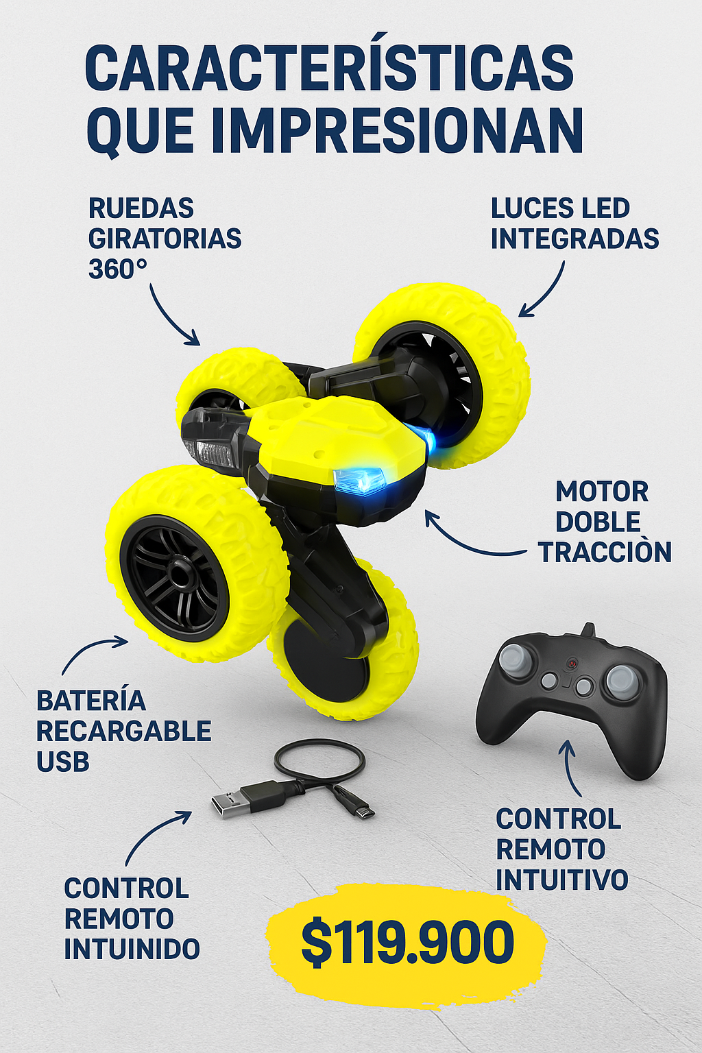El diseño acrobático + ruedas grandes + luces LED lo hacen destacar frente a otros carritos, CREANDO MOMENTOS ÚNICOS.